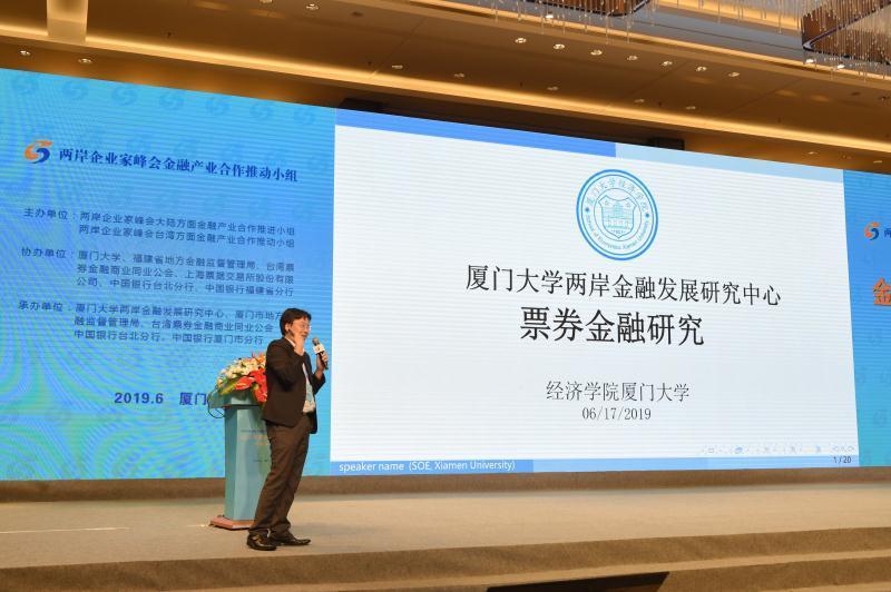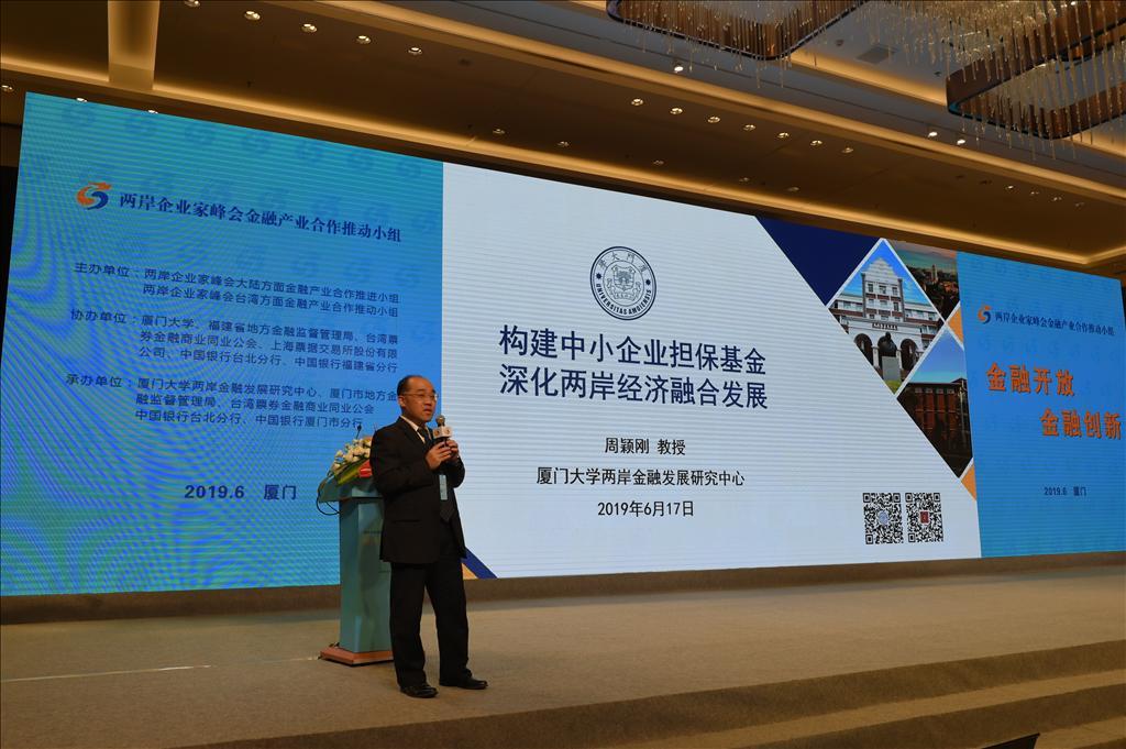 下午的会议则围绕中小企业信保基金和票券金融业务两大议题展开,由两岸企业家峰会金融产业合作推进小组台湾方面魏启林召集人主持。来自厦门大学经济学院、王亚南经济研究院、厦门大学两岸金融发展研究中心的周颖刚教授和谢沛霖副教授分别以《构建中小企业担保基金 深化两岸经济融合发展》和《票券金融研究》为题展开主题演讲,据悉,上述两项研究均为厦门大学两岸金融发展研究中心的课题研究成果。