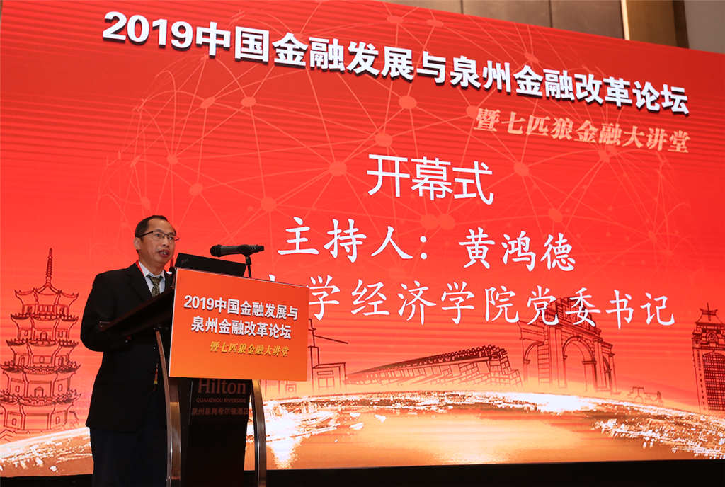 厦门大学经济学院党委书记黄鸿德主持了本次论坛。来自泉州市相关政府部门代表、各区县金融办、银行界、证券界和实业界的代表二百余人参加了开幕式。