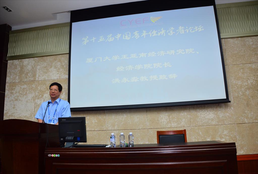 2015年7月18日上午,第十五届中国青年经济学者论坛在厦门大学经济楼隆重开幕,厦门大学经济学院党委书记雷根强教授主持开幕式。