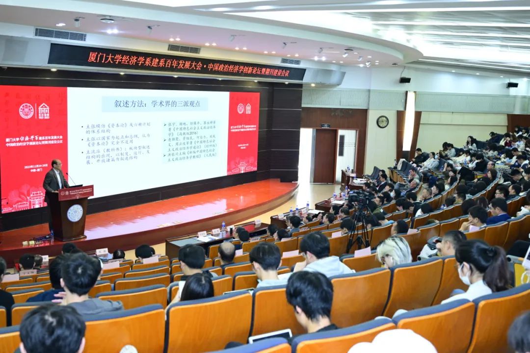 11月25日,中国政治经济学创新论坛在厦大经济楼成功举办。该论坛是厦门大学经济学院经济学系建系百年大会重要活动之一,含开幕、闭幕主题演讲和分论坛环节,10位来自政治经济学领域的专家带来主题演讲,22篇研究成果在分论坛中被报告分享和研讨。