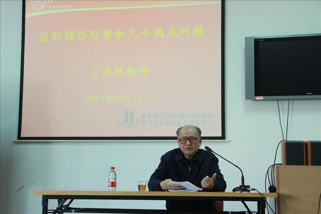 4月15日下午,教育部人文社会科学重点研究基地——厦门大学宏观经济研究中心双周Seminar在经济楼D310室如期举行,著名经济学家、中国社会科学院特聘顾问、厦门大学宏观经济研究中心学术委员会主任王洛林教授应邀为宏观经济研究中心和经济学院师生讲解当前经济形势以及经济热点问题。宏观经济研究中心主任李文溥教授主持本次座谈。