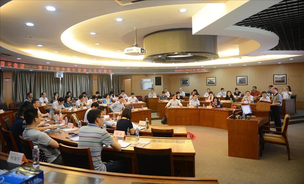 11月8日上午,安徽国元集团中青年管理人员研修班在厦门大学经济学院隆重开班。经济学院副院长朱孟楠教授,国元集团党委委员、纪委书记姚立斌同志以及来自国元集团各职能部门负责人和国元证券、国元信托、国元保险、国元投资、国元创投等成员公司的总经理等参加了开班典礼。开班仪式由国元集团党委委员、副总经理许斌主持。