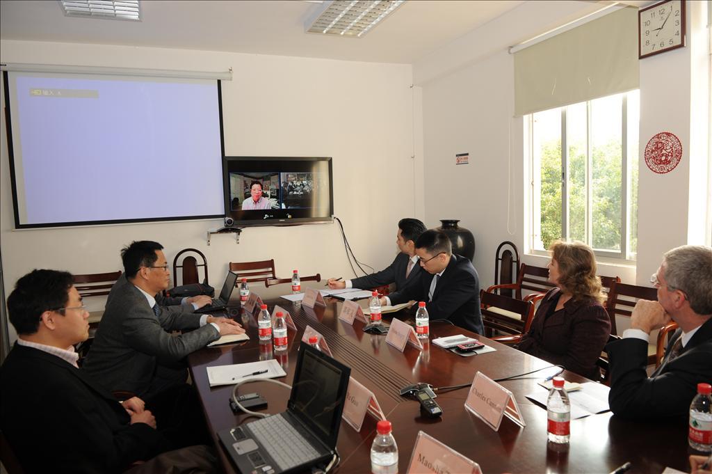 1月30日,经济学院党委书记雷根强,副院长朱孟楠、方颖,院长助理郭晔等与美国代表团举行座谈会,经济学院、王亚南经济研究院洪永淼教授通过越洋视频出席座谈会。洪永淼、郭依灵、Jack Hsu、Diane Sagey、Charles Cannon分别介绍了我校经济学院和王亚南经济研究院、KFF、Long Institute、 UCI商学院以及UCI法学院。通过相互了解、沟通,双方达成了师生交流以及EDP培训等方面的合作意向。座谈会还重点讨论了由KFF推动的K-VIP访问学者计划的实施要点。最后,雷根强、Jack Hsu分别代表经济学院、UCI签订了合作备忘录,标志着双方的合作拉开帷幕。