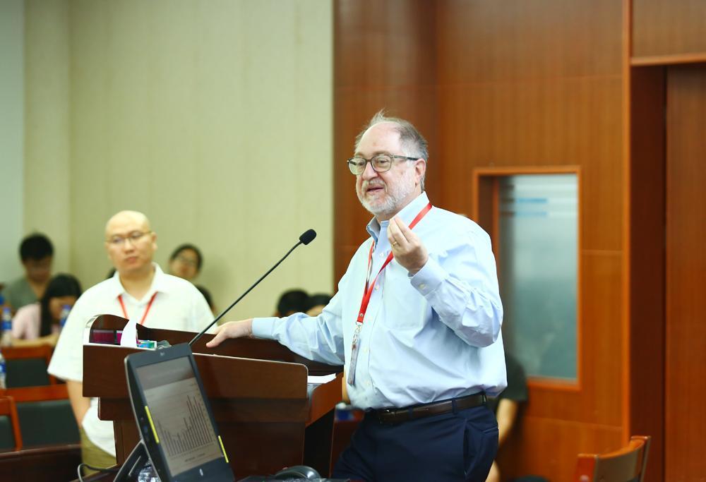 随后,在厦门大学郭晔教授的主持下,邹至庄教授带来题为“Development of Financial Economics”的第一场主题演讲。邹至庄教授介绍了美国普林斯顿大学金融经济研究的历史,并说明普林斯顿大学在货币学、金融经济学和金融工程中做出的努力和主要贡献。他提到,普林斯顿大学培养了一大批中国留学生,这些留学生大多回国工作,参与到了中国金融经济学的教学和研究。邹至庄教授提及1980s至1990s,中国教育部匮乏金融研究所需的资源和资料,在这期间,他参与了中国人民大学的金融经济学研究的培训项目,并且邀请来自中国人民大学、复旦大学等在校学生参与他的教学与科研。他见证着中国金融学一步步发展壮大。在中国现代化的过程中,中国的经济科学、金融科学都开始有自己的学派,在此后也一定会更加繁荣发达。演讲的尾声,邹至庄教授和大家亲切讨论并给出自己的观点:金融教学中,社会实践和教学研究同样重要;大数据时代金融工程的发展方向,美国金融市场的研究成果可以用于解决中国的问题,微观经济学如此,金融经济学也是如此。