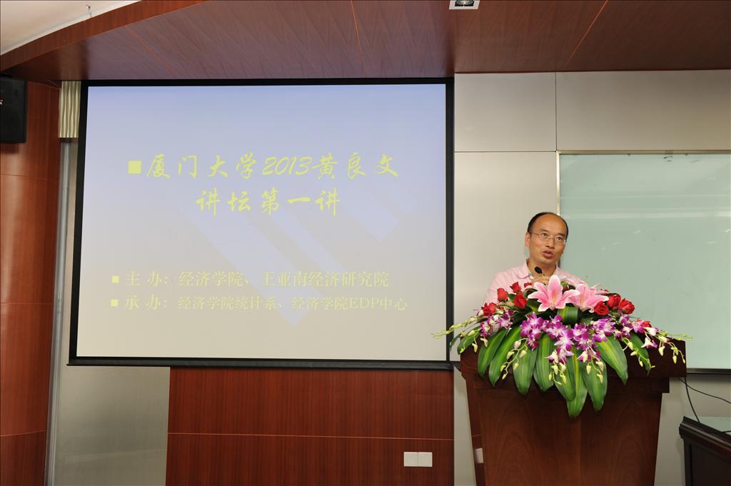 洪永淼教授首先登台致辞。他指出,厦大经济学科历经92年的发展,一贯以专业实力享有盛誉,桃李遍布天下,而黄良文教授正是经济学科的杰出代表。从教61年来,黄良文教授在经济统计教学与科研领域辛勤耕耘,培养了大批的优秀专业人才,对我国经济统计理论体系的建立和发展做出了卓越贡献。厦门大学经济学科将借黄良文基金会之助、集社会各界之力,全力支持黄良文讲坛的发展。