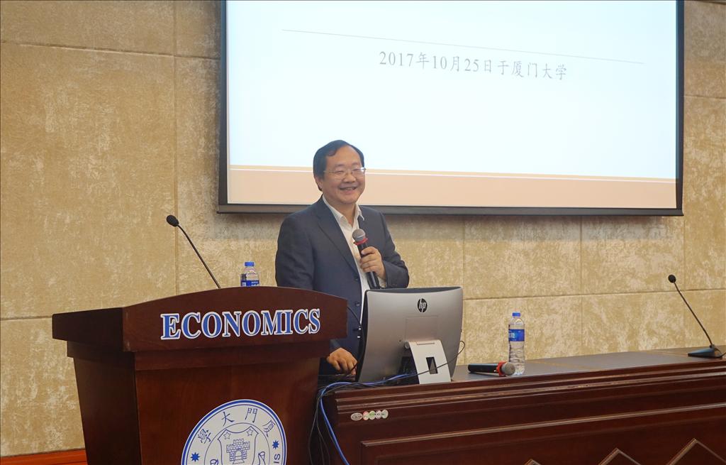 10月25日,中国人民大学经济学院刘守英教授到访厦大经济学科,在经济楼N402进行一场题为“土地制度变迁与国民经济结构变革”的学术讲座。讲座由周颖刚教授主持,龙小宁教授为刘教授颁发厦门大学富邦金融与产业论坛讲座纪念牌。