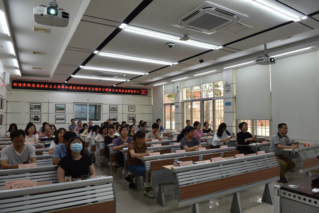 本次学习以线上线下相结合的方式开展,以经济学院D136会议室为线下主会场,通过腾讯会议同步直播。经济学院和王亚南经济学院党委理论学习中心组成员和全体师生参加学习。