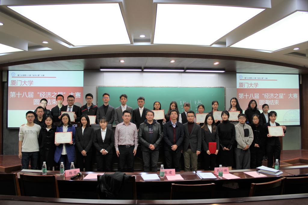 12月6日晚,“国际银行杯”厦门大学第十八届“经济之星”大赛决赛在经济学院N302顺利举行。经济学院经济学系副主任赵建、经济学系教工党支部书记张兴祥、经济学系助理教授陈煌老师应邀担任大赛决赛评委。