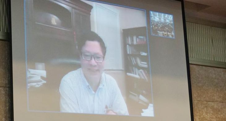最后,远在美国的洪永淼教授通过现场连线对新生的到来表示了欢迎。他从历史沿革、学科建设、院系设置、师资队伍、专业结构、国际交流合作项目等方面为新生们介绍了厦大经济学科的整体情况和各项优势,希望新生们在研究生阶段能珍惜在学校学习的时光,在有限的时间里尽量充实自己,努力学好经济学核心课和专业课,充实自己的专业知识和素养。洪教授还表示,学校不仅是学生学习专业知识的地方,更是学会做人的地方,学习之外也要提高自身的政治素养。洪教授最后嘱咐新生们要自觉遵守学校的规章制度,在厦大度过一段无憾的研究生生涯。