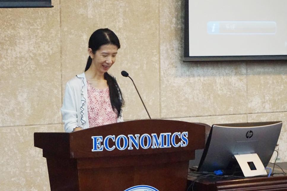 接着,统计系刘婧媛副教授作为导师代表欢迎新生们的到来。刘老师结合自身求学和研究经历,总结了新生们需要着重对待的两个区别。一是关于本科和研究生学习的区别。研究生是卸下本科刚性任务后的放飞自我阶段,因此,她建议新生培养主动和能动的习惯,包括主动提升解决问题的能力、主动建立起每个阶段的小目标等。其次,她希望新生做好时间管理,避免时间的碎片化,合理利用和安排好接下来的时光。二是关于积累和速成的区别。她提出,新生们在研一的首要任务是夯实基础,努力学习专业核心课程是必要途径。她希望在学习核心课这个系统训练的过程中,新生们可以不断提高自主学习和批判性独立思考的能力,避免急功近利。最后,刘老师鼓励新生们加强课外锻炼。身体是学习的本钱,有一个健康的身体是学习研究的基础。