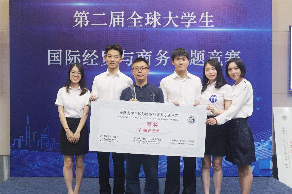 5月19-20日,由四川省商务经济学会、共青团西南财经大学委员会和西南财经大学国际商学院联合主办的第二届“全球大学生国际经贸与商务专题竞赛”决赛在西南财经大学柳林校区举行。我院国经贸系张耕老师带领苏水天、毛婧奕、胡宜婷、吴静和张应钦等五位国经贸系研究生组队参赛,最终荣获本届大赛第一名。