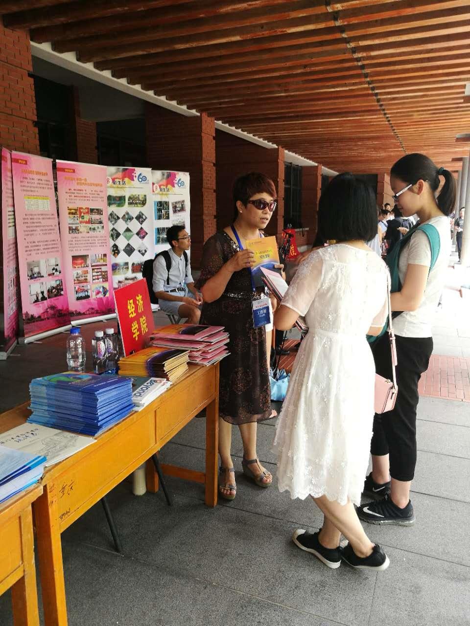 同期,经济学院、王亚南经济研究院在科学艺术中心沿廊设置展位,以展板、介绍手册、宣传页等多种形式为考生及家长提供详尽的本科培养信息,吸引了大量的考生和家长前来咨询,两院的教学管理人员为考生和家长答疑释惑。