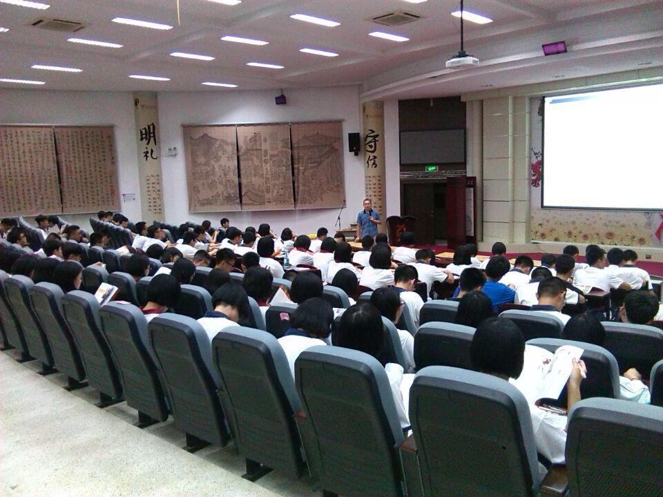张宇老师结合自己留学美国康奈尔大学的经历,从为什么要出国留学、出国前要做的准备及出国的收获等,与学生们分享了留学的真正意义和目的。谈及留学生涯带给他的收获时,张宇认为专业知识的增长、生活能力的提高及朋友圈子的扩大都是留学所带来的巨大价值。他同时告诫学生们一定要树立正确的留学目标,明确留学目的再出国。