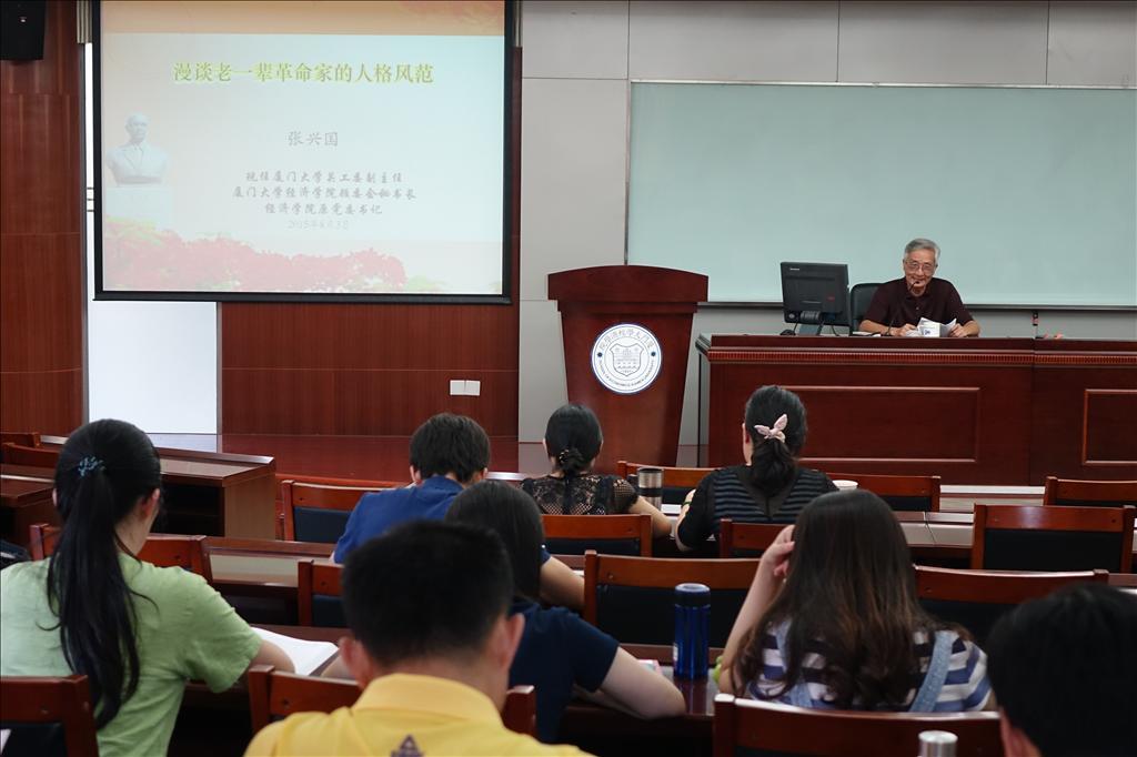 8月3日下午,厦门大学关工委副主任、经济学院顾委会秘书长、原经济学院党委书记张兴国在经济楼N303为两院行政技术人员作了一场“漫谈老一辈革命家的人格风范”讲座。