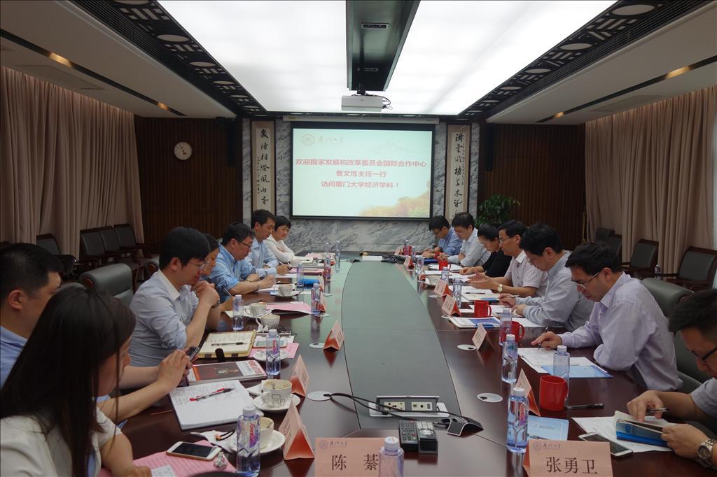 5月11日下午,国家发展和改革委员会国际合作中心主任、中国经济体制改革研究会副会长曹文炼一行到访厦大经济学科,厦门大学副校长杨斌教授,社科处副处长冯文晖以及经济学科洪永淼、陈国进、王艺明、韩乾、钟锃光等在经济楼N501参加座谈。