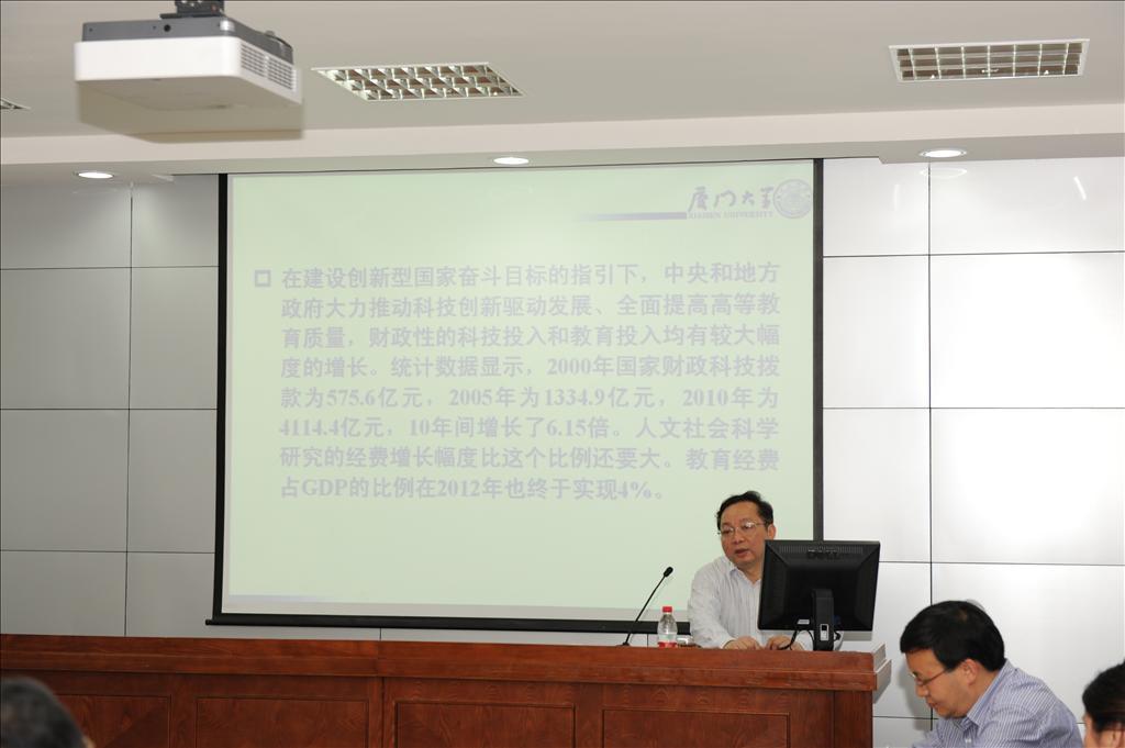 宣讲会上,陈武元代表学校社科处、财务处作了题为《贯彻落实教育部、财政部“三个文件”精神暨厦门大学科研经费管理办法宣讲》的报告。他首先介绍了教育部和财政部联合下发的《关于加强中央部门所属高校科研经费管理的意见》(教财【2012】7号)以及教育部下发的《关于进一步加强高校科研项目管理的意见》(教技【2012】14号)和《关于进一步规范高校科研行为的意见》(教监【2012】6号)等三个文件出台的背景和主要内容。