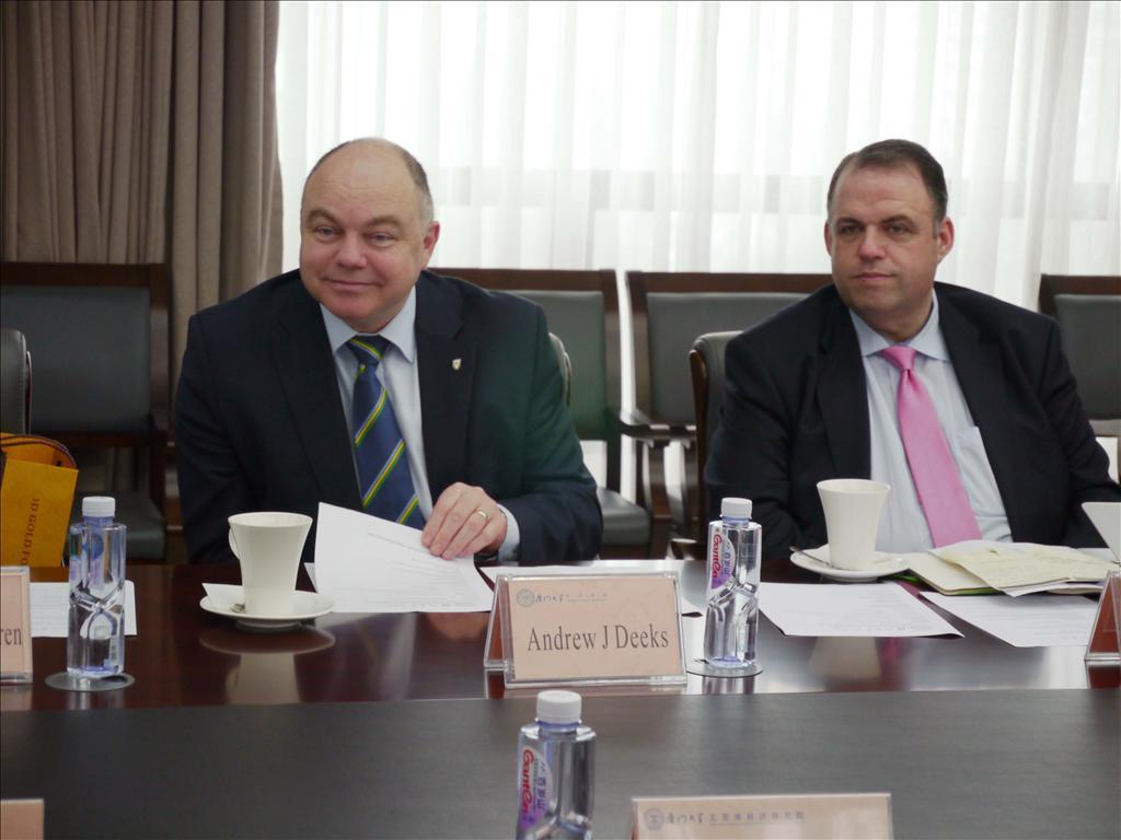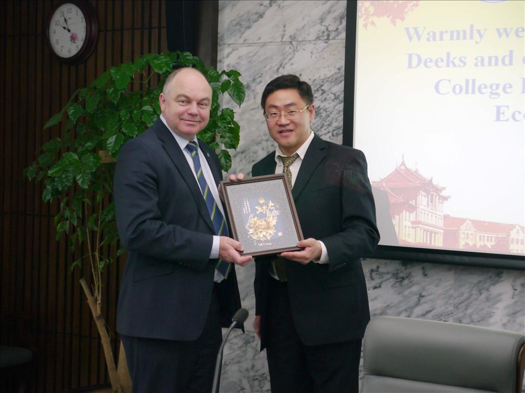经济学院副院长方颖,WISE院长助理、国际教育合作中心主任韩乾,经济学院国际教育合作中心主任Chris White等在经济楼N501与代表团进行了热烈的座谈。座谈会上,方颖通过图文并茂回顾了两校特别是与经济学科自2012年以来的合作历程和交流成果并介绍了两院的情况,Chris White和韩乾则分别介绍了经济学院的2+2+1和1+3项目以及WISE的1+1项目的合作情况。Damien Mcloughlin表示两院选派到UCD学习的学生基础扎实、表现突出,并对两院良好的学习学术氛围和活跃的国际交流深表赞赏。Andrew J Deeks在讲话时充分肯定了两院和UCD商学院的合作,并表示将出台更多有利于国际交流与合作的政策,进一步推进学生和学术交流。此外,双方还探讨了新的合作方案,并对未来的合作充满信心。