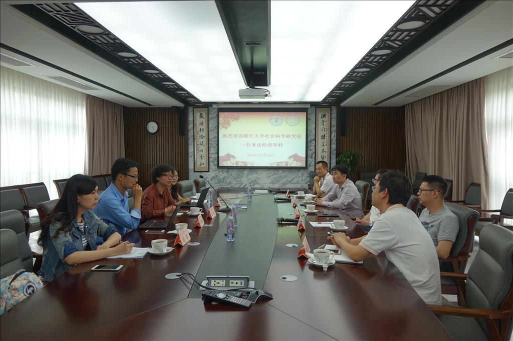 在经济楼N501会议室,厦大经济学科陈国进、陈海强、钟锃光、罗智超等老师与到访嘉宾进行了会谈。陈国进首先代表厦大经济学科对客人的到访表示欢迎并介绍了WISE的发展经验,随后双方就高校研究机构的机制建设、人力资源建设、社会服务开展等方面进行了深入探讨。冯茹介绍了浙江大学社会科学研究院实验社会科学实验室的基本建设情况,希望能借鉴计量经济学教育部重点实验室(厦门大学)的成功建设经验;陈海强、钟锃光、罗智超等老师介绍了我校实验经济学研究的进展以及部重室在团队建设、项目开拓与管理、实验教学改革与创新等方面的建设经验。双方一致希望能进一步展开协作,共同探索创新高校科研机构的管理运行机制。