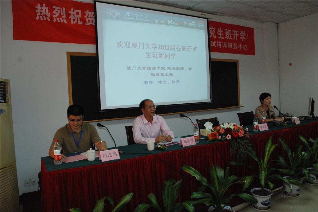 郭晔在致辞中首先代表经济学院对各位新学员的到来表示热烈的欢迎和诚挚的问候,向大家简要介绍了经济学院的悠久历史、经济学科的学术水平和近年来取得的新成就。她表示,经济学院的研究生教育质量在全国一直名列前茅,国际化的办学思路和办学理念日臻完善。福州作为省会中心城市,经济学院非常重视在福州开展在职研究生教育,经济学院将秉承“学术服务社会,知识创造价值”的办学理念,向福州班选派厦门大学最优秀的师资和最优质的教学资源,努力打造一个更新知识、提升自我、交流经验的高端学习平台。