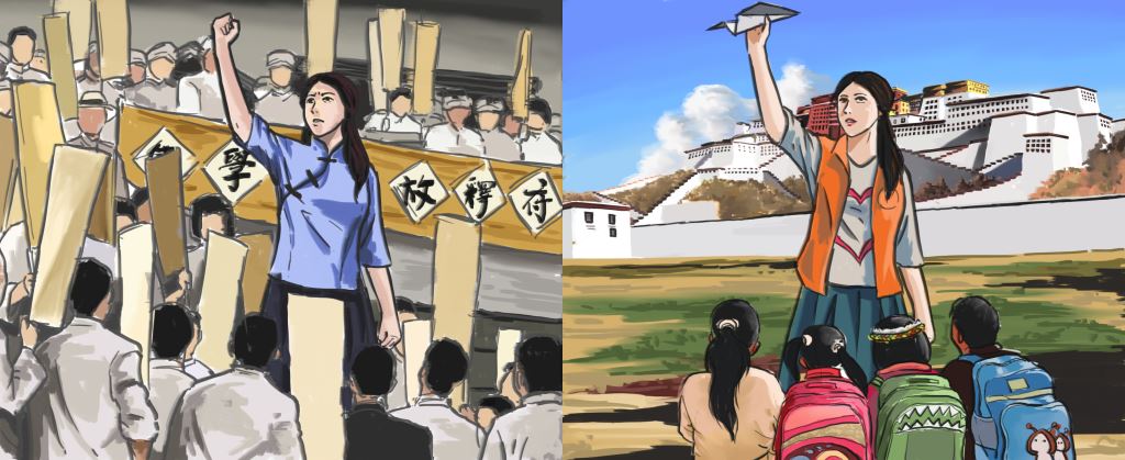 值得一提的是,系列手绘作品“跨越百年的神同步”选取百年前的五四游行与新时代青年赴西部支教的画面,抗美援朝战争中青年志愿军与四川凉山森林消防员闪耀在火光中的脸庞,还有知识青年上山下乡和当代大学生村干部扎根基层的场景等,生动描绘了“不同的时代,同一种精神”,讴歌百年间不同时代的青年对五四精神的传承和践行。