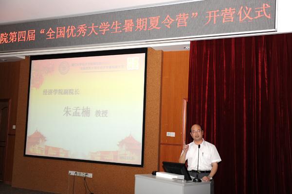 仪式伊始,朱孟楠作了题为“岁月如云,青春永在”的精彩致辞。首先他代表经济学院师生对各位营员的到来表示热烈欢迎,同时对各位营员获得此次的学习机会表示衷心祝贺,他希望同学们在夏令营的学习生活中与学院保持沟通、交流,多与名师对话、与同学探讨,建立友谊,创造美好的未来。最后,朱孟楠表达了对各位营员的深切祝福,并提出了殷切希望。他希望营员们珍惜时光,刻苦学习;希望营员们遇到困难,迎难而上,并保持良好的心情,“勇敢美丽”,让人生更精彩;希望营员们在人生追求理想的道路上,坚持不懈,留下汗水,收获辉煌。