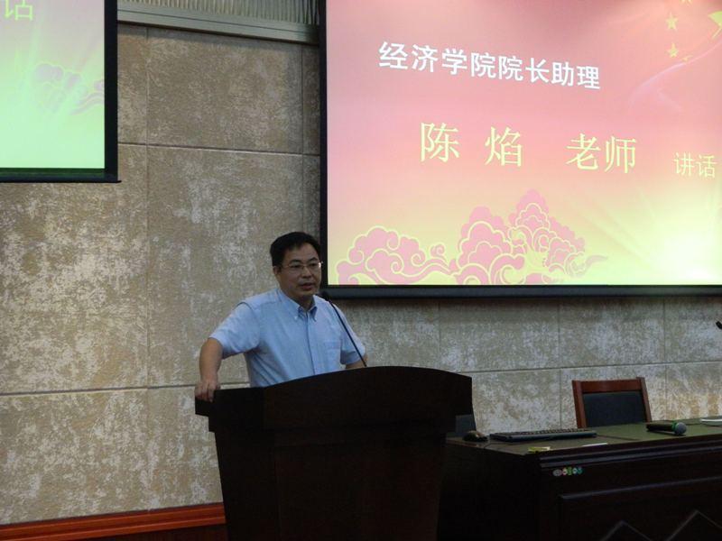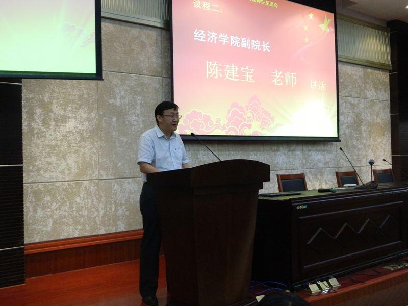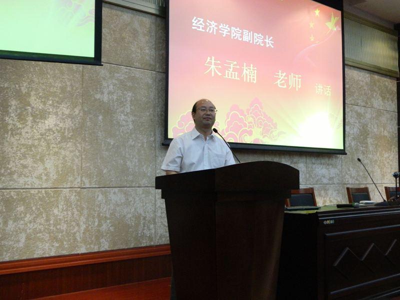朱孟楠老师首先发表讲话。他对来自五湖四海的同学们表示热烈欢迎,并从学术研究、人才培养、办学特色、师资力量等多个方面对厦门大学经济学院做了简要分析。此外,朱老师还对同学们提出多项要求与建议,他希望大家珍惜大学时光,敢于克服困难,努力做一个有思想、有道德、有能力的经济学人。