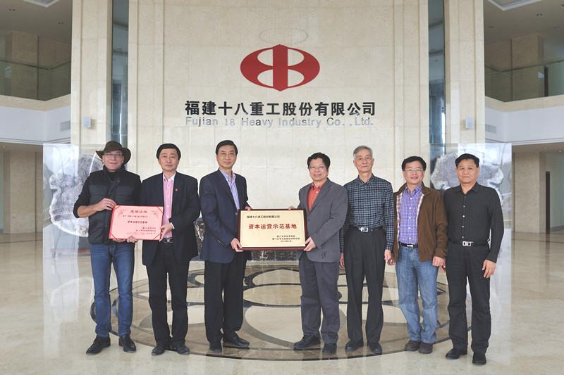 参观结束,洪永淼教授为十八重工授予厦门大学经济学院EDP中心“资本运营示范基地”的牌匾和荣誉证书,以鼓励学员学有所成、勇于将所学知识运用于创业实际的实干精神。在新落成的国际会议厅,大家听取了邹鲁建同学关于十八重工发展规划、商业模式、企业文化等方面的精彩报告,期间,学员们纷纷向邹总提问,洪永淼教授也在旁答疑解惑、妙语点评,参访学员表示收获良多。