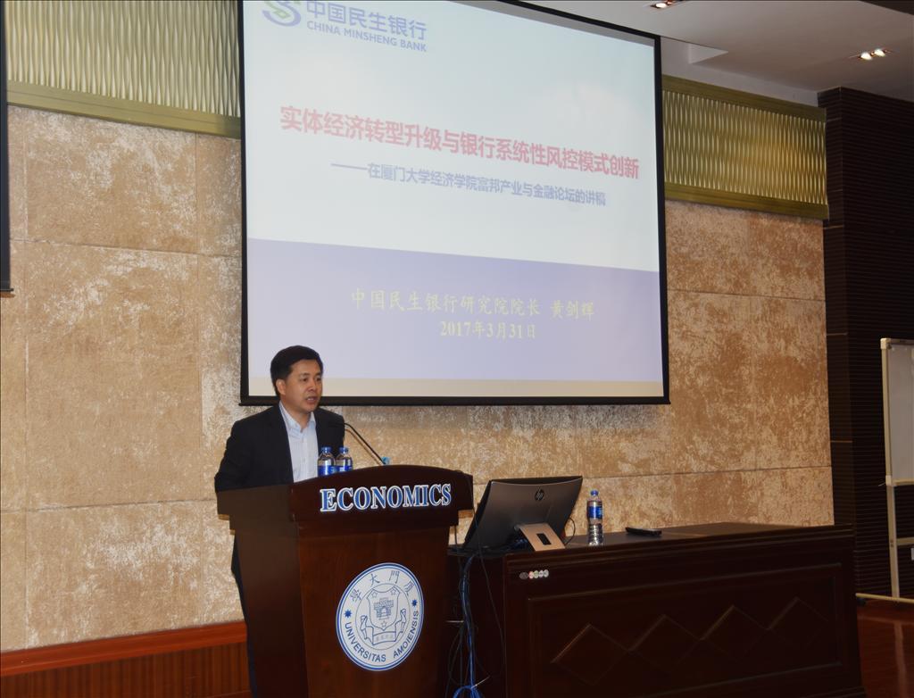 3月31日,中国民生银行研究院院长黄剑辉到访厦大经济学科,在经济楼N402进行了一场题为“实体经济转型升级与银行系统性风控模式创新”的学术讲座。300余名师生参加到场聆听。讲座由周颖刚教授主持,朱孟楠教授为黄剑辉院长颁授富邦金融与产业论坛讲座纪念牌。