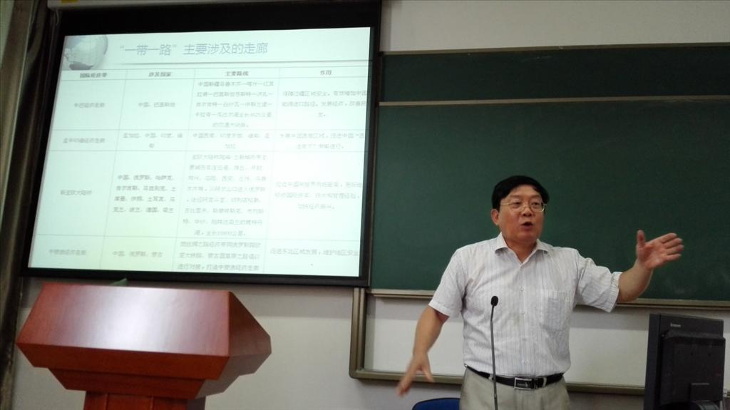7月15日上午,中国人民大学商学院教授、博士生导师、国家重点学科产业经济学学科带头人陈甬军教授应邀做客国际经贸名人论坛,在经济楼D236给经院师生带来了一场题为“‘一带一路’倡议与中国经济新常态”的专题讲座。讲座由国际经济与贸易系主任彭水军教授主持,陈焰教授、黄梅波教授、杨权教授、陈爱贞教授、蒋冠宏副教授等众多经济学院的师生参加了本次论坛。