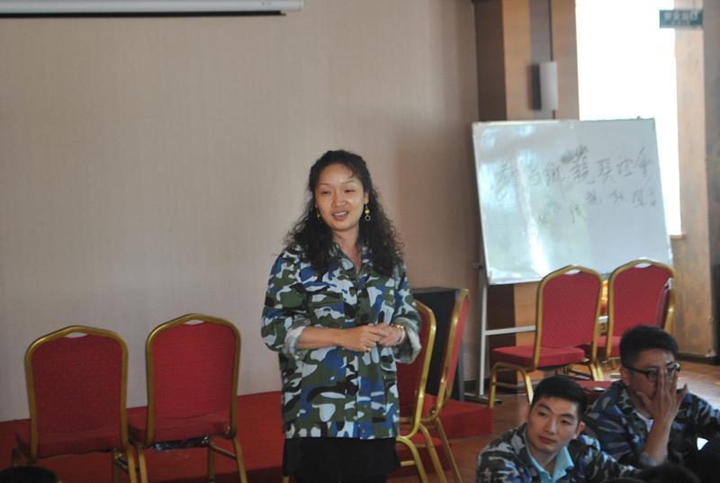 首先进行的是团队创建。为方便活动的开展,学员们在教练指引下分为四组。每个小组根据自身情况,推选出一名组长。四位组长主要负责协调组员,设计队名、口号、logo,在活动中制定战略,协调组员,分工合作,带领小组成员闯关。经过8分钟的小组磨合,七匹狼队、梦之队、天地会、超越队等四个队分别成立。