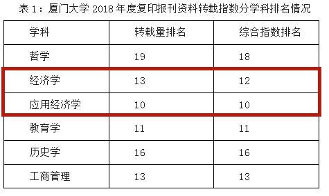 近日,中国人民大学发布了《2018年度复印报刊资料转载指数排名研究报告》和《复印报刊资料重要转载来源机构(2018版)》,厦门大学文科总体表现突出,入选“复印报刊资料重要转载来源机构(2018版)”,位列高等院校第14名。 厦大复印报刊资料转载综合指数位列高校第17名,在分学科排名中,经济学第12名,应用经济学第10名。高校所属机构中,厦门大学经济学院与法学院、公共事务学院、管理学院、教育研究院、人文学院、台湾研究院等也都名列前茅。