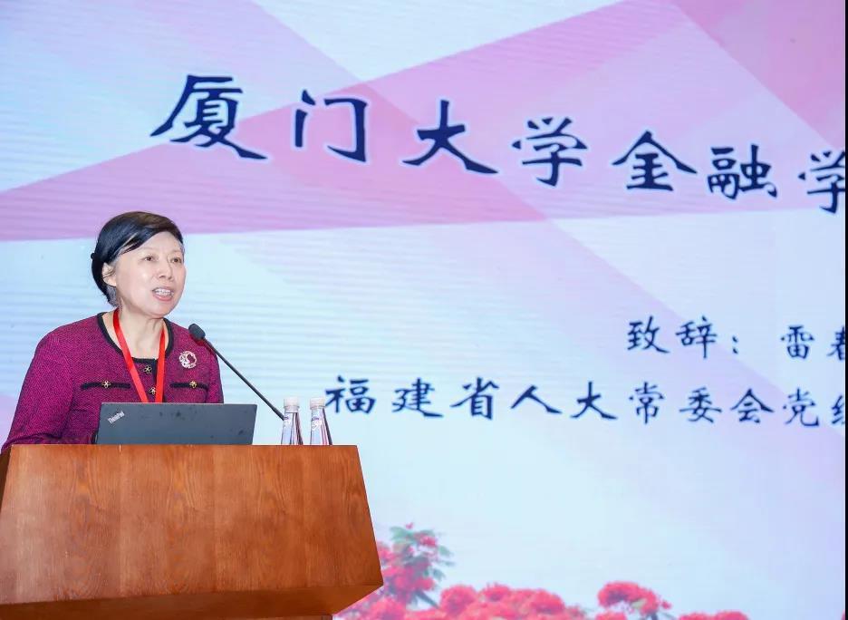 雷春美在致辞中肯定了厦大金融学科在学科发展、人才培养等方方面面取得的成绩,作为金融学科走出的学子,她倍感骄傲。雷春美回顾了自己与张亦春老师结缘师生的故事,感念恩师教诲,也祝愿厦大金融学科能立足新时代,开启新的辉煌征程。