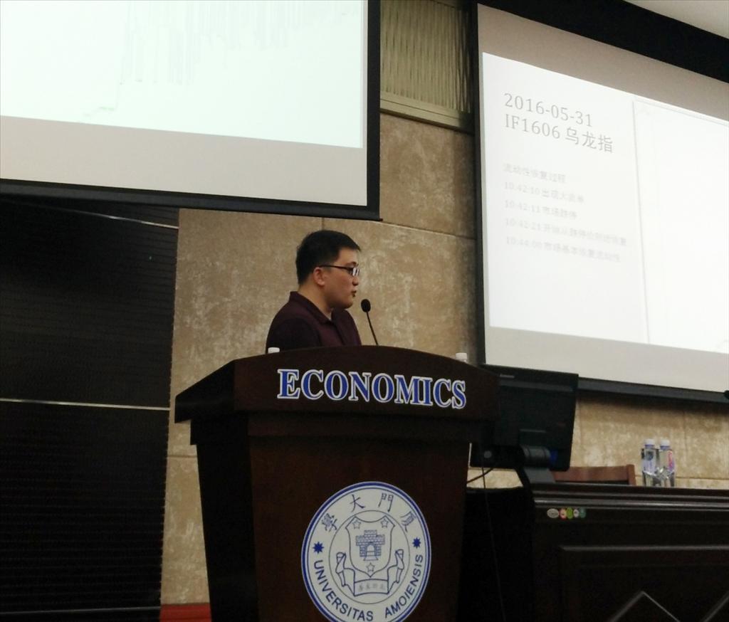 况客科技有限公司创始人、汇迪科技有限公司CEO林伟林与大家分享了“数据分析在资产管理行业的应用”。他认为现阶段金融市场逐步走向市场化,释放资本收益,以提供新的经济增长引擎。该阶段经济中的汇率、金融产品收益率、利率等波动率增大可以证明国内金融逐步开放至市场化,中国资管行业迎来了新的红利。他结合自身的创业经历,以互联网对基金影响的例子,举例余额宝和天弘基金的案例,介绍IT技术对资管行业的影响。他表示,技术让投资研究变得更为简单,一个研究的过程就是基于一个想法,在想法的基础上寻找得到数据再通过计算把结果进行可视化,最后把结果形成一份报告送给同行或客户。其中数据寻找和处理这类重复性工作占用百分之八十的时间,通过IT来压缩这一环节工作,势必可大大提高分析师的工作效率。另一方面是建立研究投资社区进行研究性工作共享,建立共享型社区,让很多重复性的工作可以共享出来,避免重复投入。他的讲座提醒同学们,创业者们需要有饱满的情怀,更需要有宏观的视野。