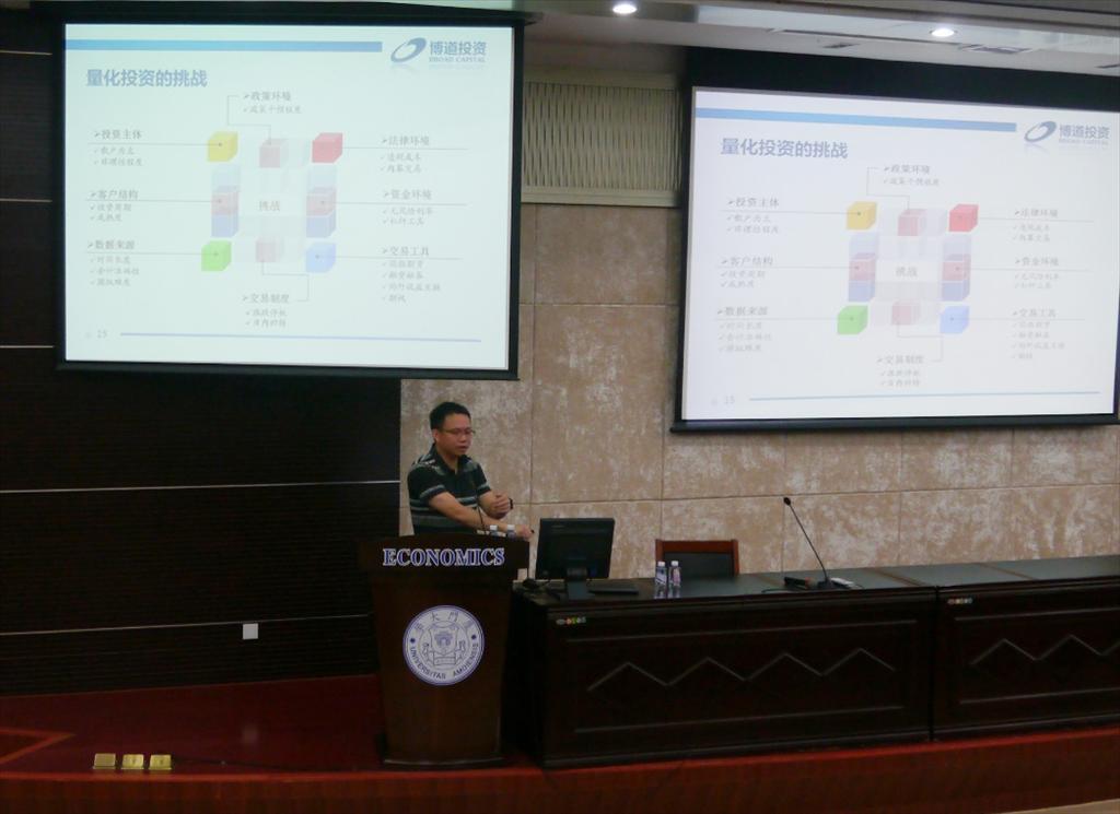 毕业于厦大统计系的博道投资创始人何晓彬博士在投资领域可谓名副其实的技术流,他给大家带来的主题是“R在量化投资的应用”。何博士在金融行业打拼多年,对于投资,他有自己的一套理解:投资是科学与艺术交织的产品。科学多一点,那就是量化投资;艺术多一点,那就是主动投资。他开始接触R时,为此种计算机语言的开放性所打动,对其进行深入的研究,此次讲座,他详细讲解了R在量化投资的应用。何博士还谈到量化策略,介绍了夏普比率,以及运用数量化手段管理好组合的波动率,进行风险平配;运用对冲策略有效控制净风险因子敞口,只保留自己擅长的风险,以及多因子策略和CTA策略等等,满满的市场实战经验带领大家充分领略量化投资的魅力。
