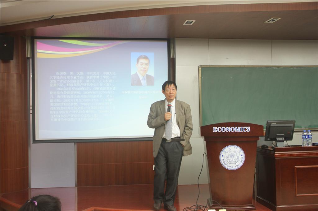 11月29日下午,中国资产评估协会副会长、秘书长、党委书记,全国资产评估专业学位研究生教育指导委员会(简称:“MV教指委”)副主任委员张国春应邀在厦门大学经济楼N303,为逾百名师生带来题为“当前形势下资产评估行业的改革发展与创新”的学术讲座。MV教指委委员、中评协培训总监赵金娥,厦门市资产评估协会副秘书长黄毅以及十余位厦门市资产评估业界代表参加了此次讲座。讲座由厦门大学经济学院教授、评估研究中心主任纪益成主持。