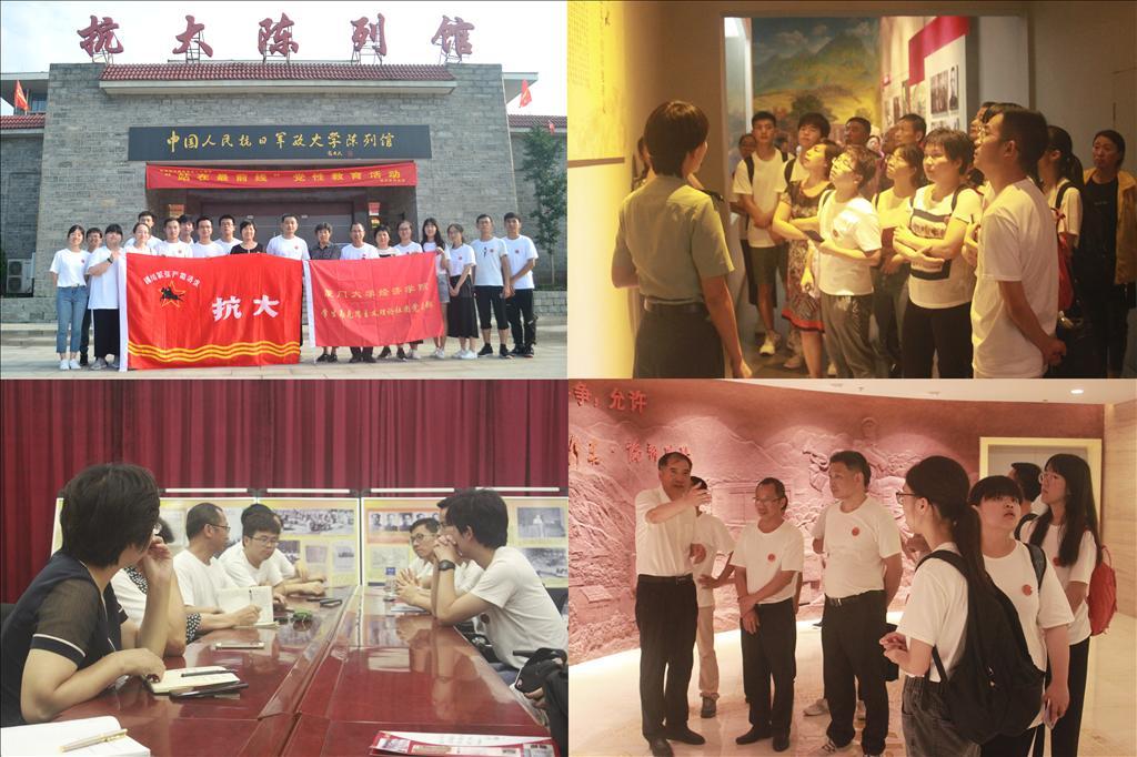 7月20日,支部成员参访河北邢台浆水镇的中国人民抗日军政大学陈列馆、与陈列馆杨树馆长等座谈交流。座谈会上同学们了解到,年逾鲐背、发至期颐的抗大学子一旦论及在抗大的学习经历,无不神采奕奕,滔滔不绝。革命先辈们挽救民族危亡、誓死不做亡国奴的爱国精神,让同学们不禁思考,我们当今的美好生活从何而来?我们应该成为怎样的人?能否像高捷成烈士等抗大学子,随时准备为党和人民牺牲一切?
