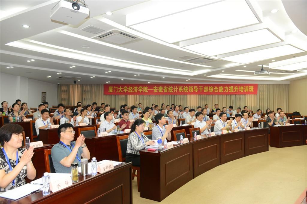 5月7号上午,由厦门大学经济学院继续教育中心承办的安徽省统计系统领导干部综合能力提升培训班顺利开班。来自安徽省统计局各机关部处负责人、各市县区统计局局长以及阜阳市、界首市主要领导干部参加了此次培训。安徽省统计局党组书记、局长钱晓康,阜阳市统计局局长王凯和经济学院党委副书记王艺宏出席了开班典礼。开班典礼由界首市委常委、副市长刘博主持。