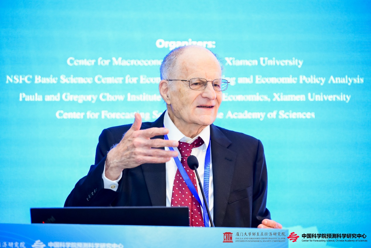 随后,诺贝尔奖得主托马斯·萨金特(Thomas Sargent)教授带来了题为“Dynamic Mode Decomposition of a CEX Panel”的精彩主题演讲。
