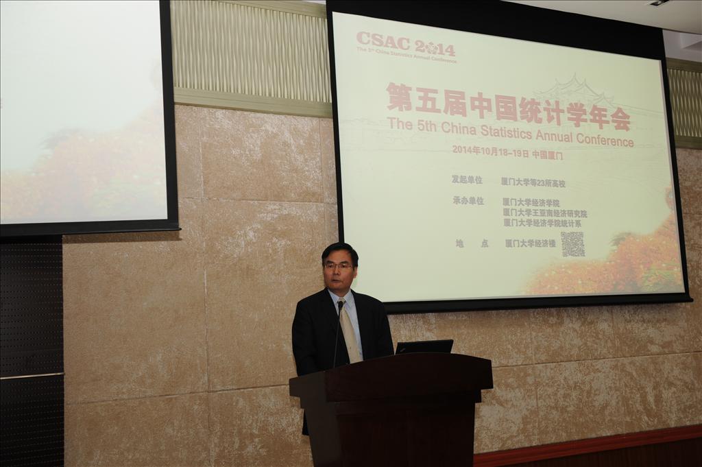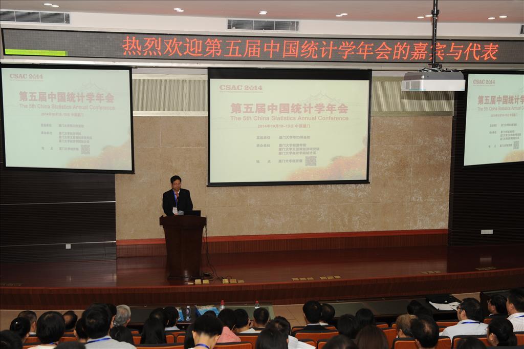 洪永淼教授介绍了厦大经济学科的成就以及统计学科65年的辉煌历史与发展现状。他表示,近几年来,厦大经济学科致力于推动中国经济学的国际化和现代化,大力促进厦大理论经济学、应用经济学和统计学三个一级学科之间的交叉融合、优势互补,在创新中形成更具活力和竞争力的学科体系。在当前国内统计学进入一个新发展阶段的背景下,因应统计学科的发展趋势,厦大统计学科在继续坚持与发展经济统计学科的同时,积极培育数理统计学和计量经济学等学科,努力推动这些方法论学科在经济实证研究中的应用。依托王亚南经济研究院和经济学院统计系,积极引入了数理统计学、计量经济学等一批相关专业的海外学者,厦大统计学科得到了全面的发展和壮大。他希望在此次国内统计学的盛会中,能够得到国家统计部门领导的指导,增进与兄弟院校同行的了解与交流,并加强合作,共同推动中国统计学以及相关学科的交叉融合和繁荣发展。