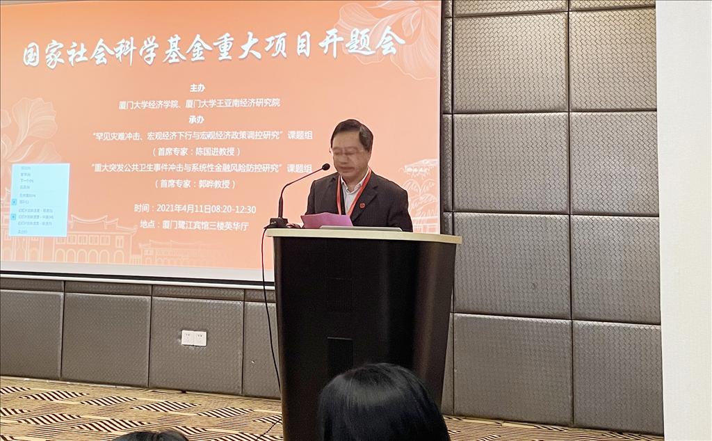 2020年度厦大经济学科获得两项国家社科基金重大项目立项,分别是:陈国进教授主持的课题《罕见灾难冲击、宏观经济下行与宏观经济政策调控研究》和郭晔教授主持的课题《重大突发公共卫生事件冲击与系统性金融风险防控研究》。2021年4月11日,课题组在厦门鹭江宾馆三楼英华厅举行开题会,邀请二十余位国内高校和研究机构知名专家学者莅临现场,分享宝贵的意见或建议,为后续课题的开展提供专业咨询。