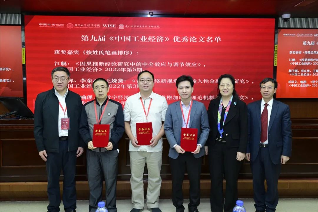 方颖副校长,中国社会科学院工业经济研究所所长、《中国工业经济》主编史丹,张其仔副主编为获奖代表江艇、杨子晖、柏培文颁授获奖证书。三位获奖代表依次发表获奖感言。