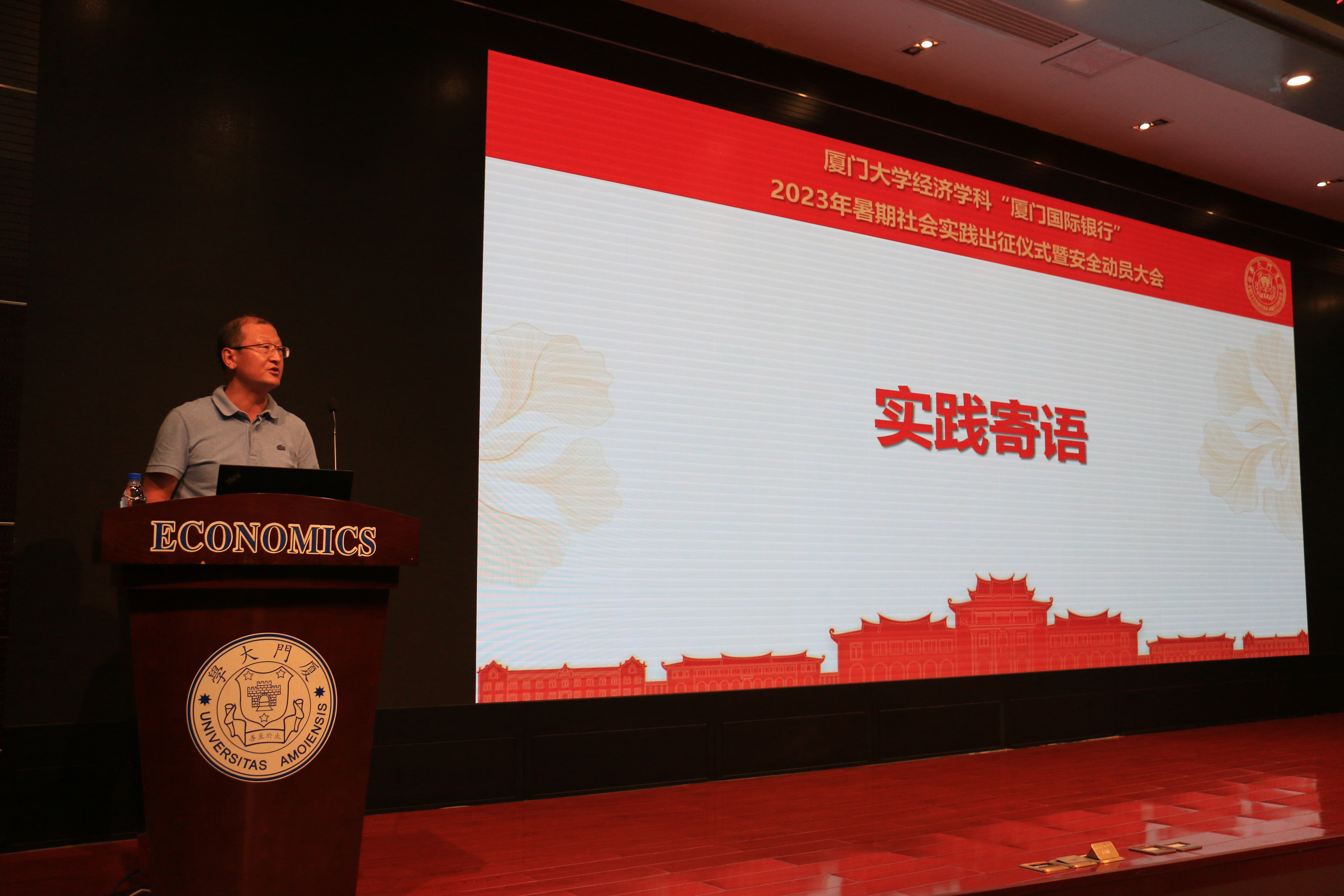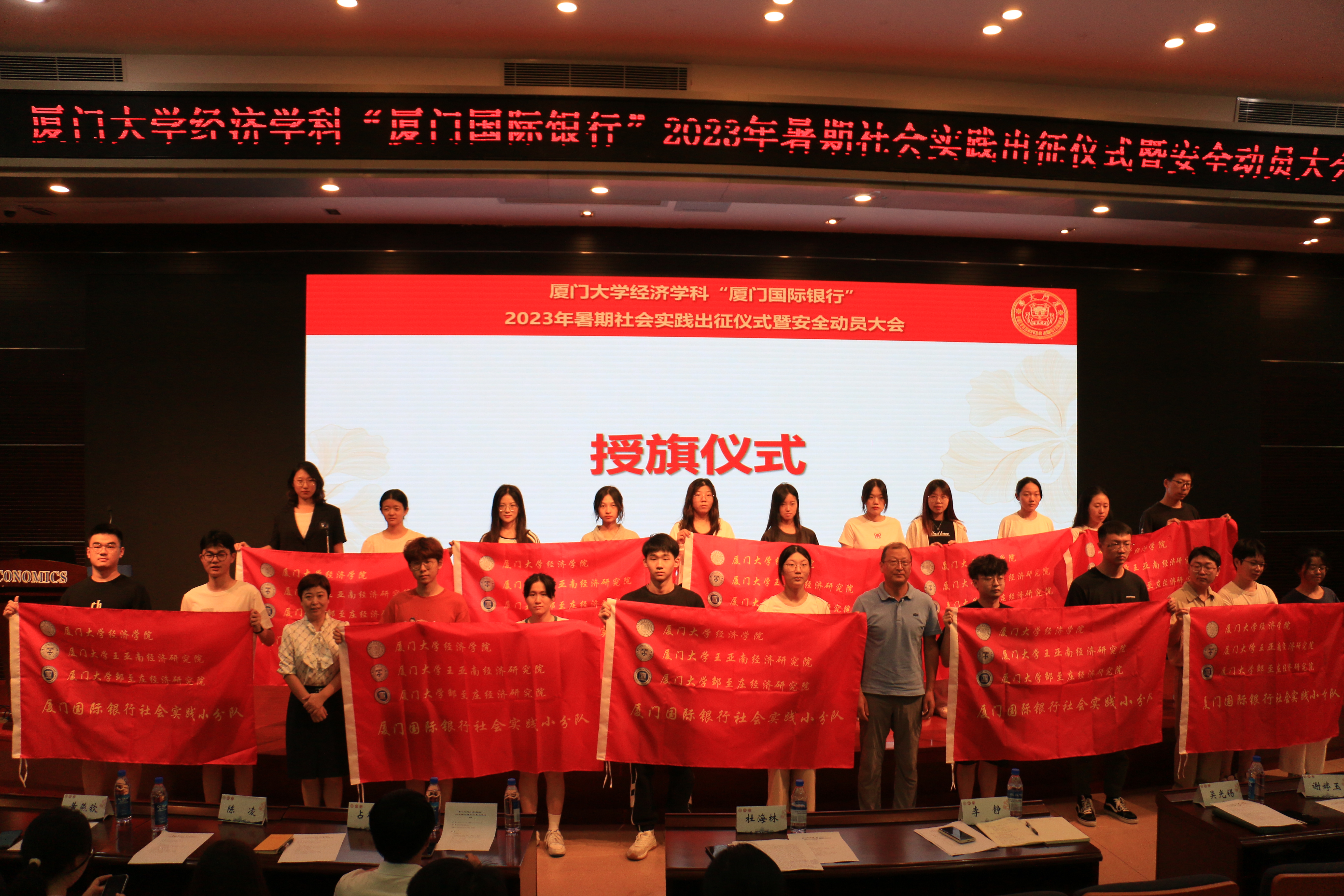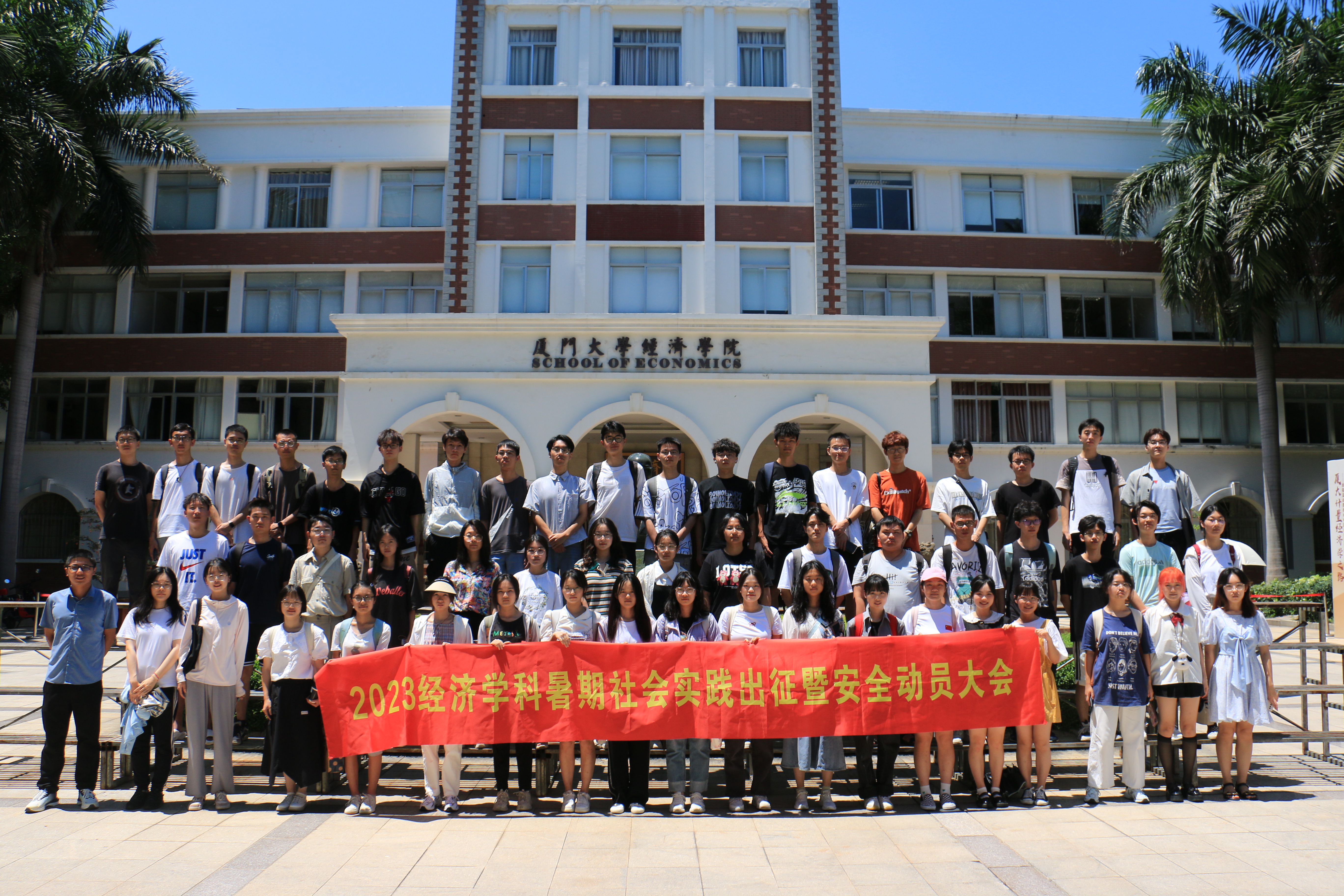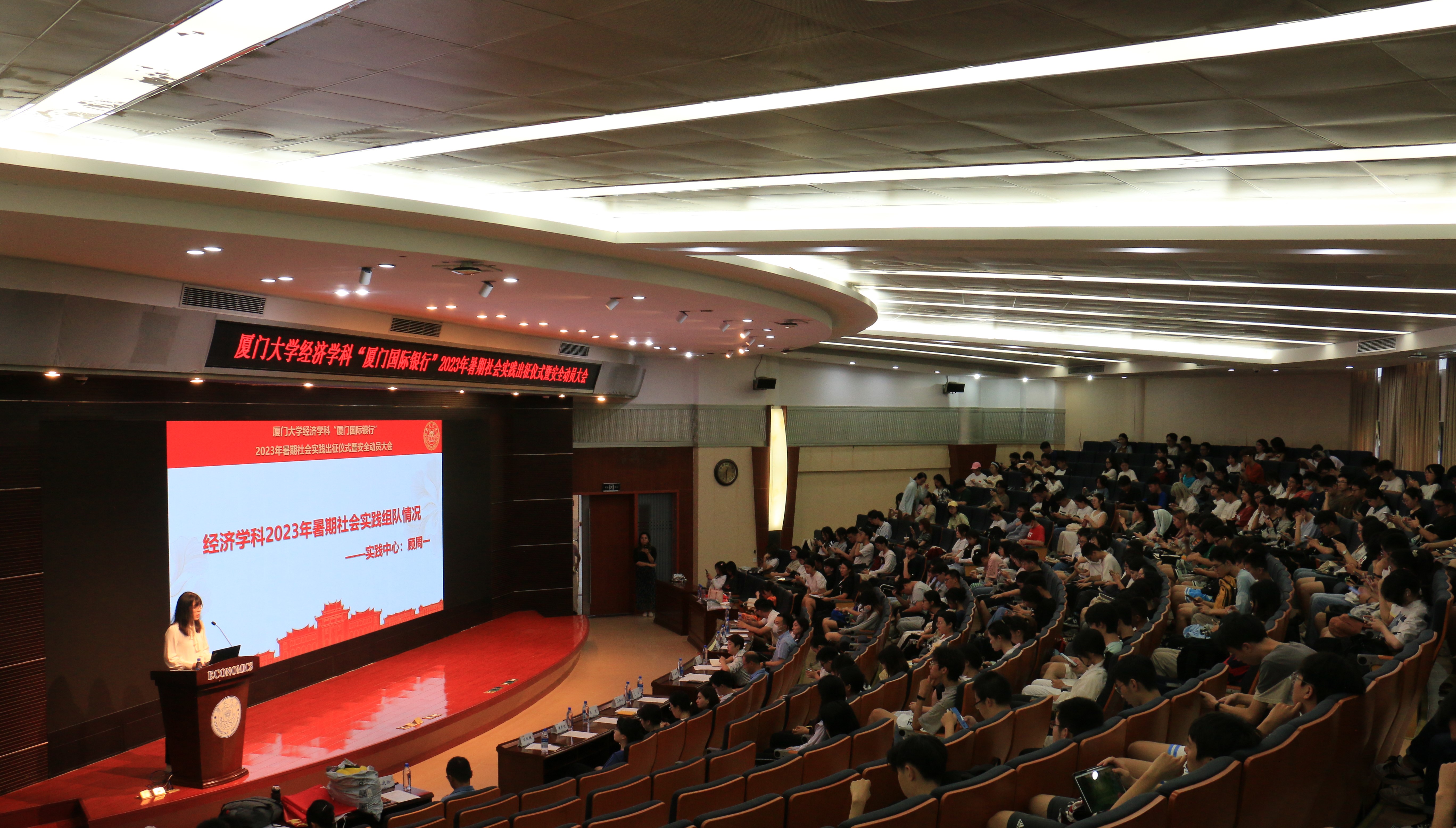 7月11日中午,厦门大学经济学科2023年暑期社会实践出征仪式暨安全动员大会在经济学院N402报告厅举行。经济学院党委副书记杜海林、李静,团委书记吴光锡,团委副书记王华、谢婷玉、占群丽,全体辅导员、实践队学生代表参加本次活动。