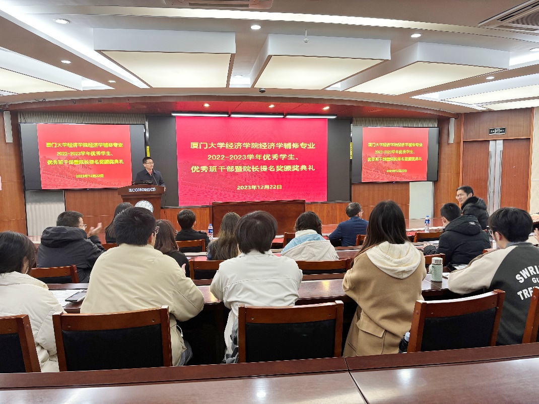 经济学院经济学辅修项目第十三届优秀学生、优秀班干部暨院长提名奖颁奖典礼于12月22日中午在经济楼N302举行。经济学院学生代表,副院长谢贞发、财政系分管本科教学的副主任林细细,辅修教师代表莫长炜、文娟、徐明生和张玉哲等出席颁奖典礼。典礼由林细细主持。