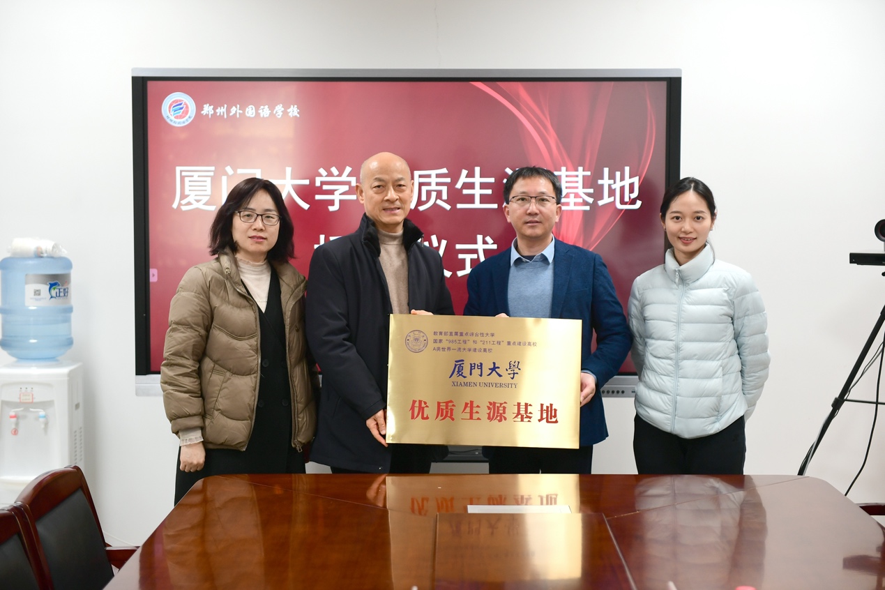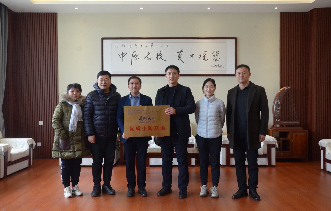 为增强厦门大学和厦大经济学科与河南省优质生源中学的合作,进一步推动厦门大学与河南省重点中学建立长久有效的合作机制,12月28-29日,厦门大学专职巡视员、经济学院原党委书记黄鸿德、经济学院副院长谢贞发、经济学院辅导员刘慧和经济学院本科教学秘书苏盈莹赴河南省教育考试院、郑州外国语学校、河南省开封高级中学、商丘市第一中学、河南师范大学附属中学和新乡市第一中学进行招生宣传活动。