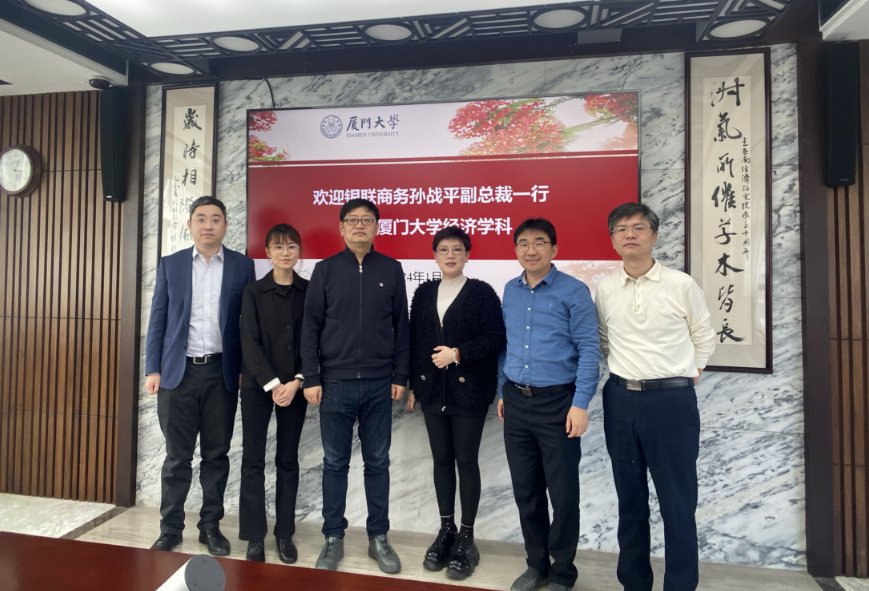 1月8日,银联商务股份有限公司孙战平副总裁一行到访经济学科,王亚南经济研究院副院长陈海强教授,经济学院副院长郭晔教授、计量经济学教育部重点实验室(厦门大学)副主任钟锃光等与来宾会面,双方进行了友好交流座谈。