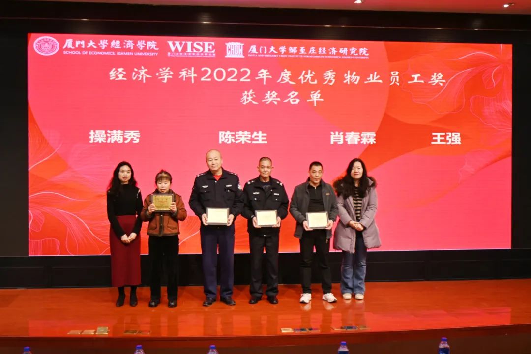 为表彰教职员工在工作中的卓越成绩,感谢他们的辛勤奉献,大会举行经济学科年度优秀教职员工颁奖仪式,分别颁发“2022-2023学年度教师考核优秀奖”“2022年度优秀职员奖”“2022-2023学年度优秀辅导员奖”,以及“2022年度优秀物业员工奖”。经济学科历来高度重视师资队伍、行政技术队伍、党政工作队伍等的建设,通过出台一系列举措,致力于打造师德高尚、业务精湛、充满活力的高素质教职工团队,为进一步提升科研创新竞争力,全面提升人才培养质量奠定扎实基础。