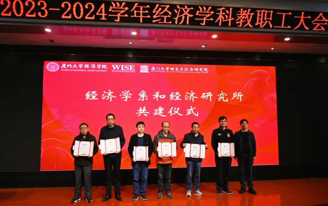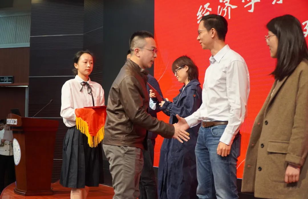 为培养新的学科增长点,促进不同教学科研单位的互联互补,形成学科的规模效应和交叉效应,经济学科积极推动不同教研单位游离资源的整合工作,今年,率先进行经济学系和经济研究所共建,在政治经济学、经济史以及数字经济领域,双方互聘教师,资源共享,团队共建,科研共建。本次大会举行了经济学系和经济研究所的共建仪式,经济学系系主任张兴祥为政治经济学和经济史领域的六名双聘教师颁发聘书,经济研究所所长蔡熙乾为数字经济领域的四名双聘教师颁发聘书。