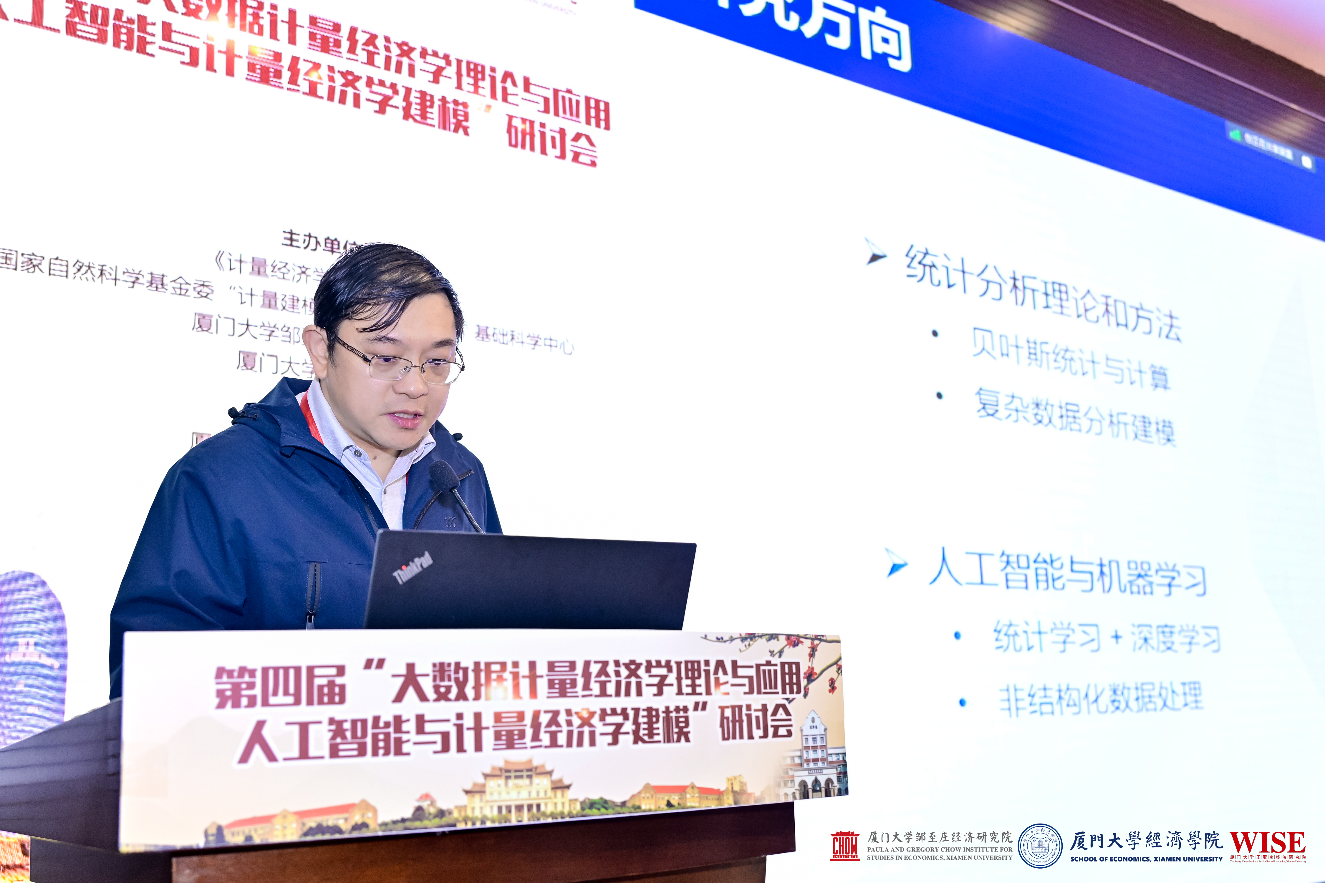 本次会议由《计量经济学报》编辑部,国家自然科学基金委“计量建模与经济政策研究”基础科学中心和厦门大学邹至庄经济研究院、厦门大学经济学院主办,中国科学院预测科学研究中心协办。来自美国芝加哥大学、康奈尔大学、波特兰州立大学、清华大学、中国科学院大学、中国科学院、中国人民大学、中央财经大学、北京航空航天大学、对外经济贸易大学、北京工业大学、北京交通大学、上海交通大学、上海社会科学院、复旦大学、南开大学、厦门大学、暨南大学、中山大学、湖南大学、武汉大学、香港中文大学、香港城市大学、香港理工大学、山东大学等众多高校和科研机构专家学者齐聚厦门大学,聚焦人工智能与计量经济学相关理论与应用的进一步融合发展,分享并深入探讨最新研究成果。