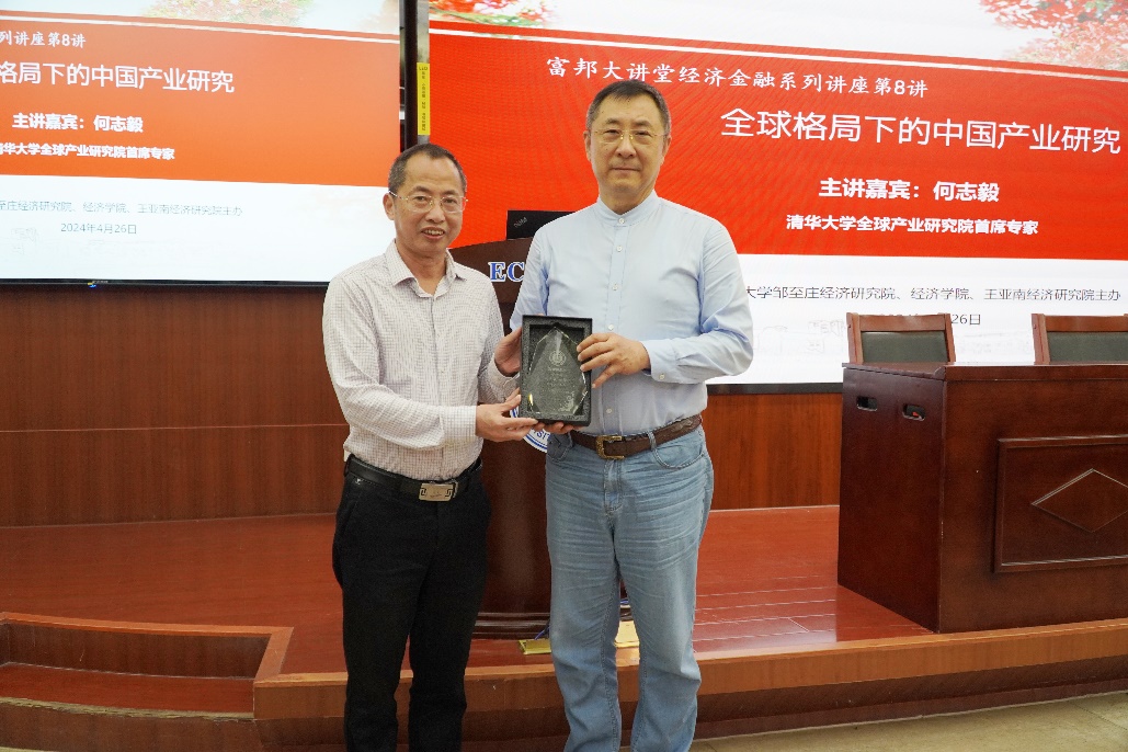 4月26日下午,厦门大学富邦大讲堂经济金融系列第8讲在厦大经济楼举行,北京大学光华管理学院教授、清华大学全球产业研究院首席专家何志毅教授带来一场题为“全球格局下的中国产业研究”的精彩报告。讲座伊始,经济学院原党委书记黄鸿德为何志毅颁授该系列讲座纪念牌。