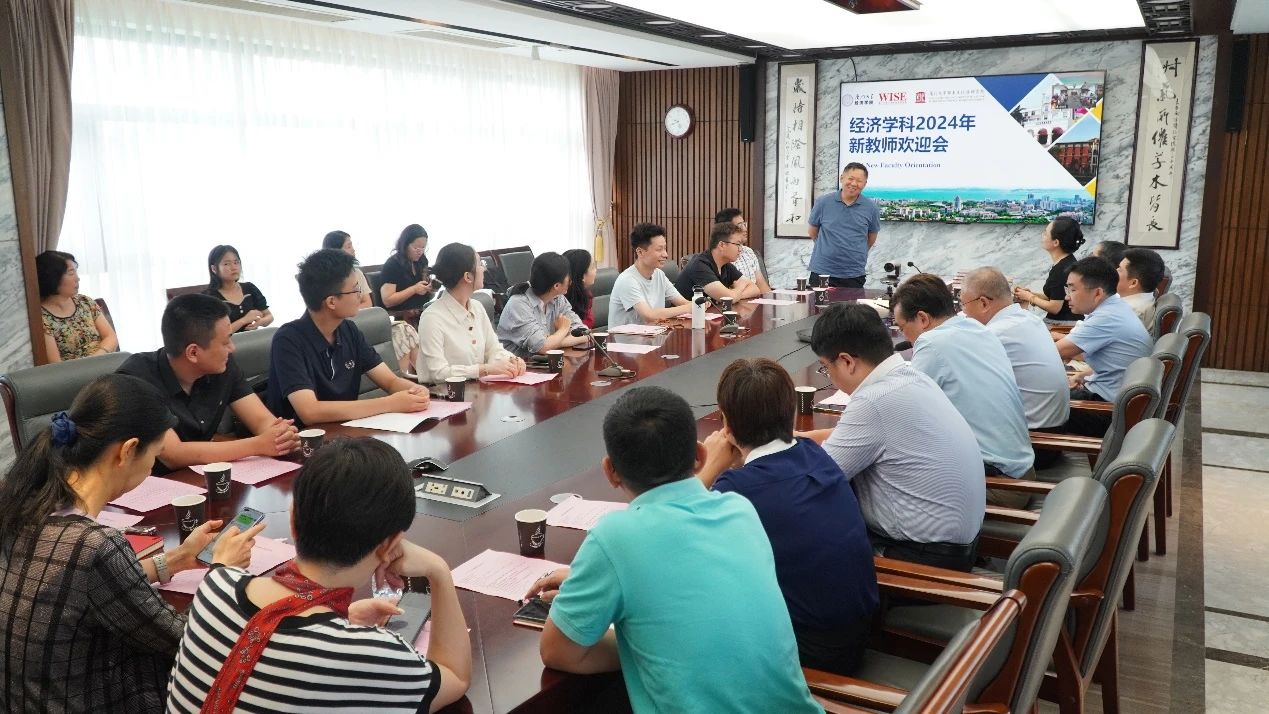 学院办公室、计量经济学教育部重点实验室、学院各部门负责人与代表向新教师们介绍了相关工作及部门概况。经济学院党委副书记陈泗林、李静,经济学院副院长郭晔、林明、彭水军、谢贞发,王亚南经济研究院副院长陈海强、牛霖琳,邹至庄经济研究院副院长薛涧坡、余安旖等出席了欢迎会。